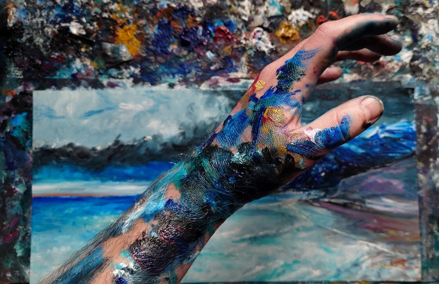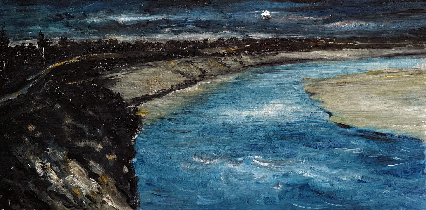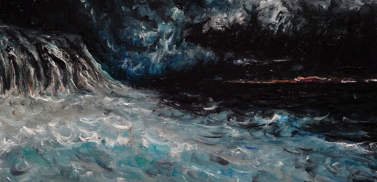Crossing the Rubicon. Original painting by myself. Oil paint on high quality canvas style paper (240 g/m). 20 x 40 cm.